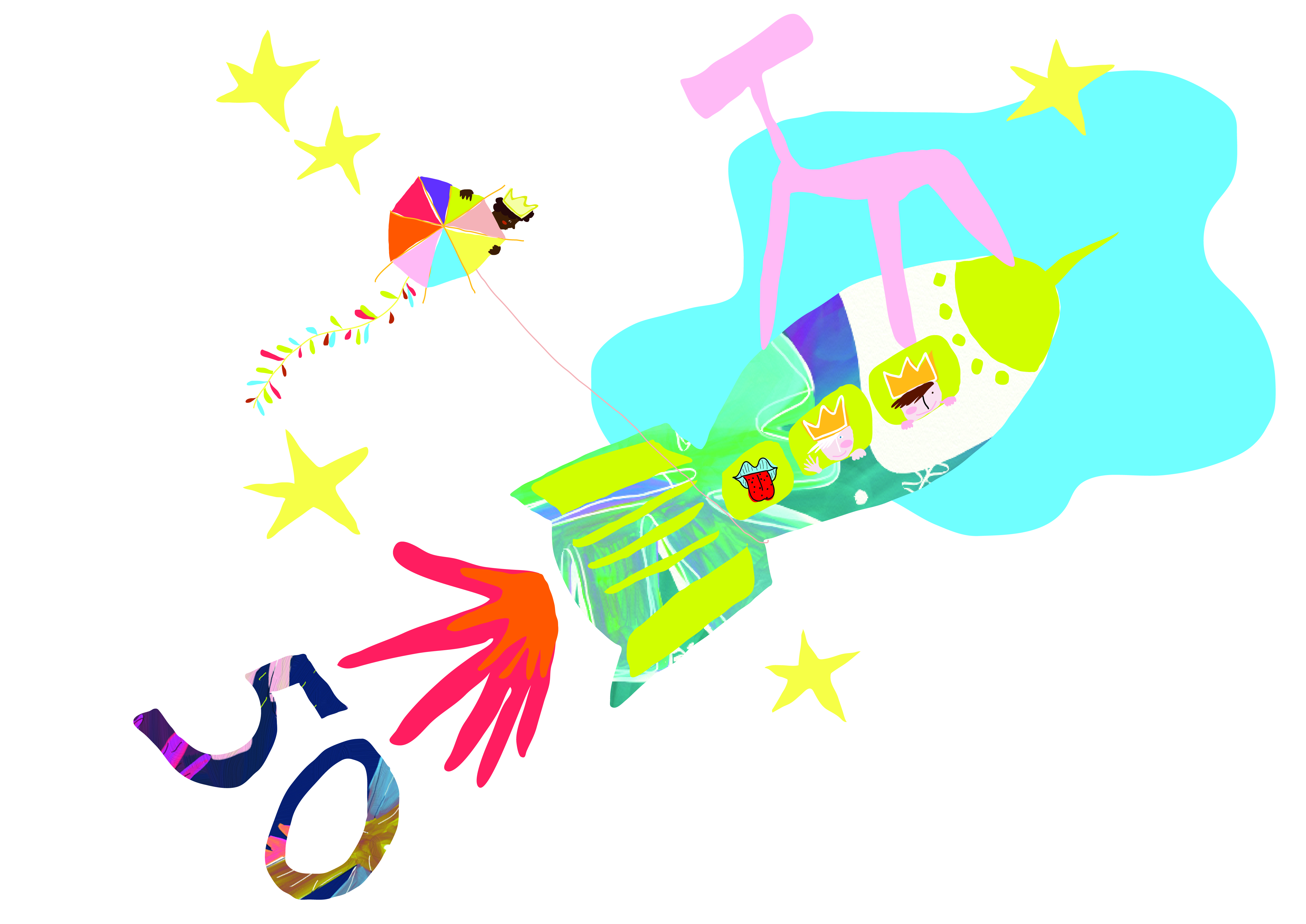 For a birthday invitation at a spacecraft with a three-leg chair.